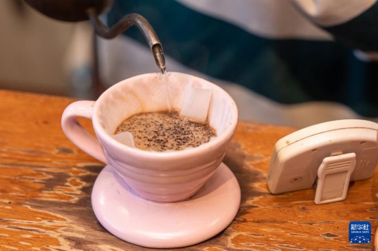 咖啡师正在老挝首都万象一家咖啡店制做咖啡(2025年12月22日摄)。发(凯乔摄) 踏上老挝的地盘,不时能闻到醇厚的咖啡喷鼻。