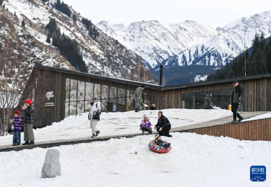 1月11日,正在哈萨克斯坦阿拉木图市郊,人们正在白雪笼盖的山地玩耍。记者 李任滋 摄 近日,哈萨克斯坦阿拉木图市郊山区被冰雪笼盖,人们纷纷到户外享受冬日雪趣。
